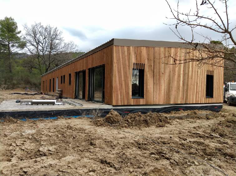 Bardage des murs ossature bois en lames de bardages verticales dougals |